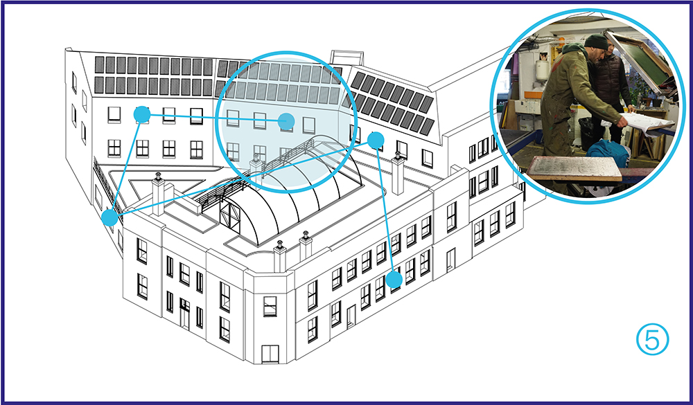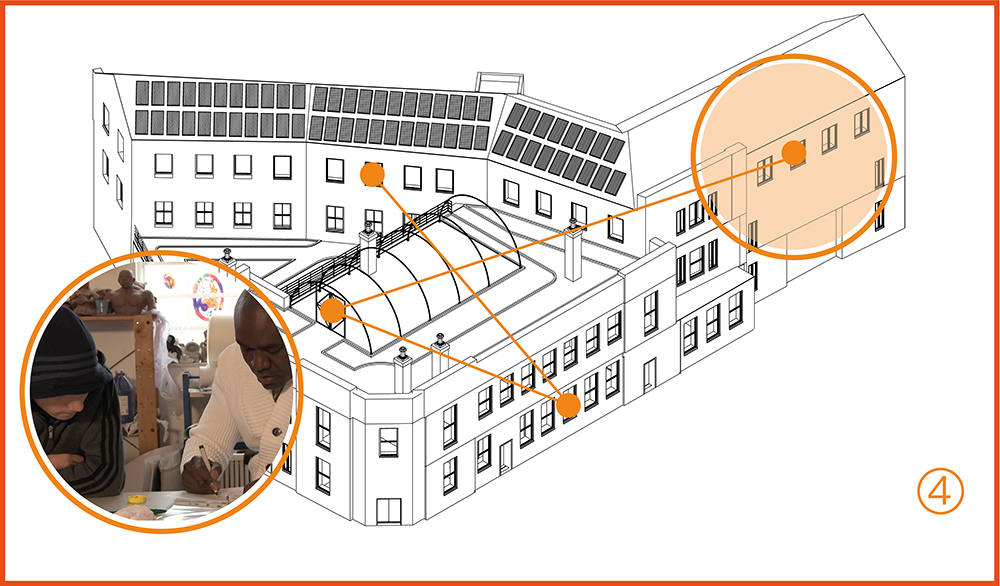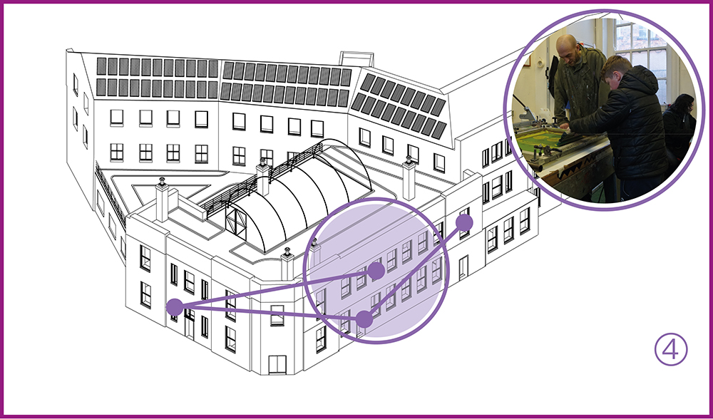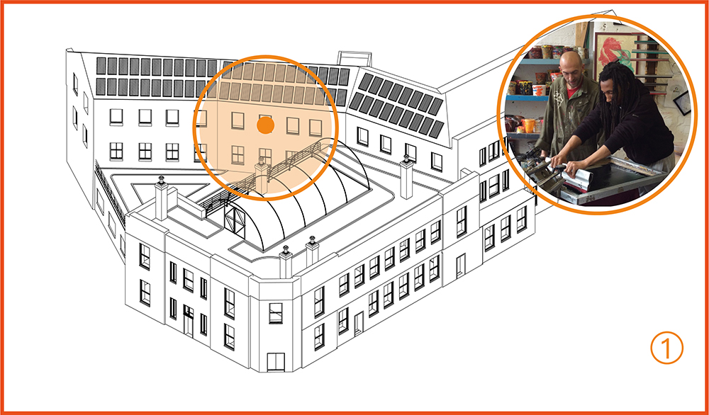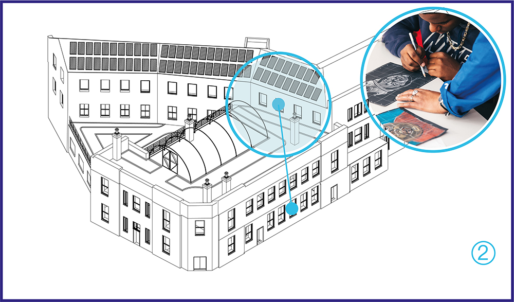 Our vision is to create a kitchen, a cafe, a roof-garden, studios, co-working, event, gallery and retail and other public spaces while safeguarding the future of one of the UK’s most innovative off-site education providers.