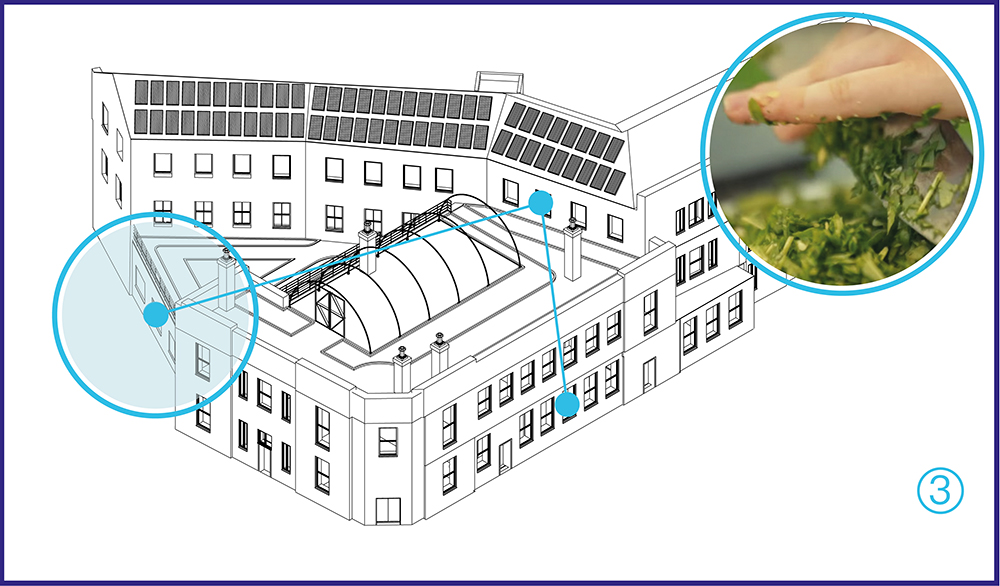 Using ingredients grown on the roof garden, students take part in a BTEC cooking class