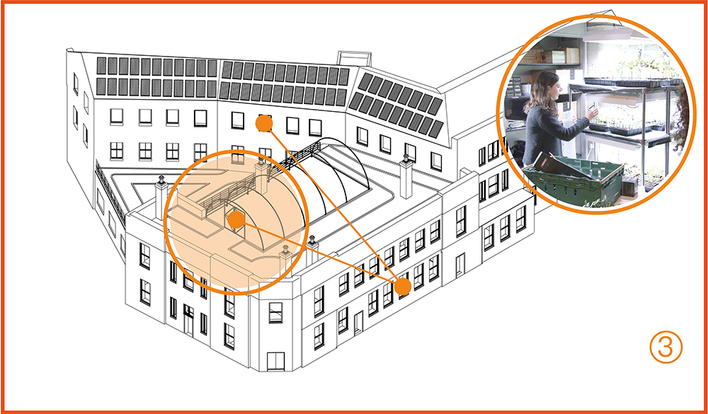 Apprentices visit the roof garden to select vegetables for the kitchen