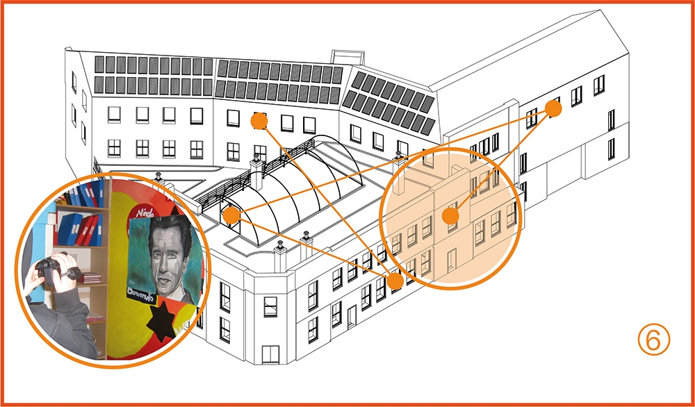 In the exhibition space, the apprentice creates a photographic record of the students’ print display